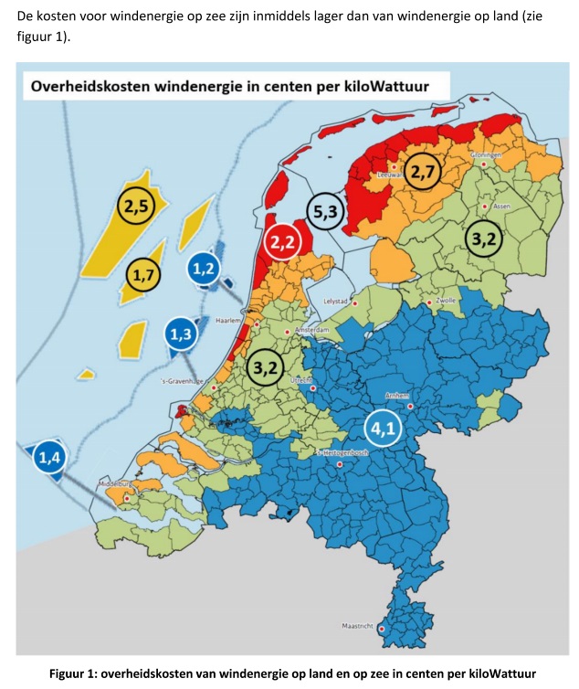 Op onderstaande kaart zie je ook dat hoe verder in het land hoe duurder het wordt. Omdat het daar minder waait. Wat is de logica om belastinggeld (subsidie) te besteden aan de exploitatie van achterhaalde bedrijfsmodellen? Turbines nabij woningen zijn veelal niet de exploiteren omdat ze vaak stil worden gelegd. In Houten weten ze daar alles van.